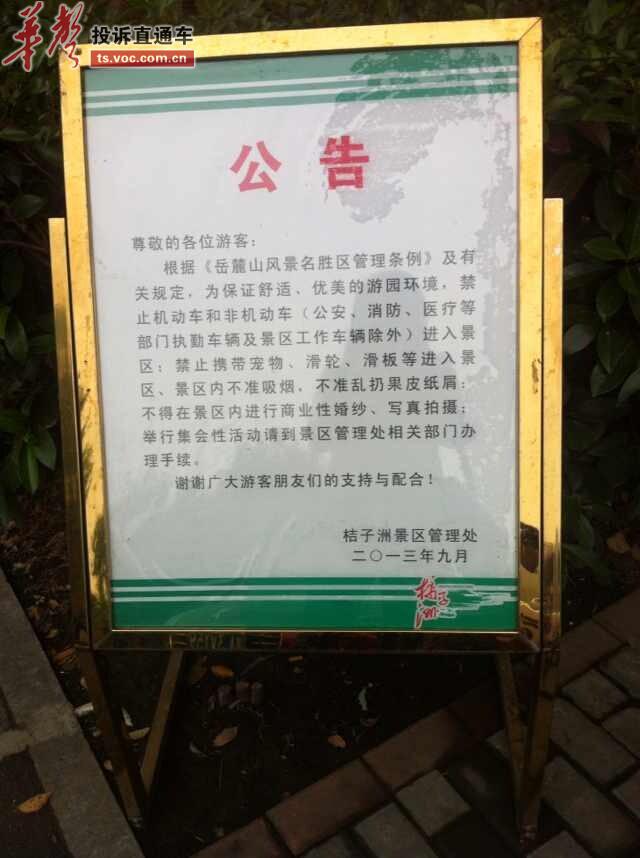 橘子洲景区东门口立着的公告牌(记者 刘乐 摄)