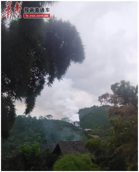 谢先生系怀化市通道县县溪镇香坪村村民,他家附近有三家硅厂。从谢先生提供的图片上可以看到,远处硅厂烟囱中正在向外排放大量浓烟废气,原本的青山绿水现在已经变成了烟雾缭绕的情景。