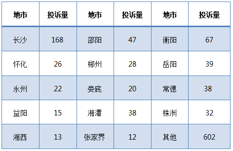 本周,各地市收到有效投诉量如下表: