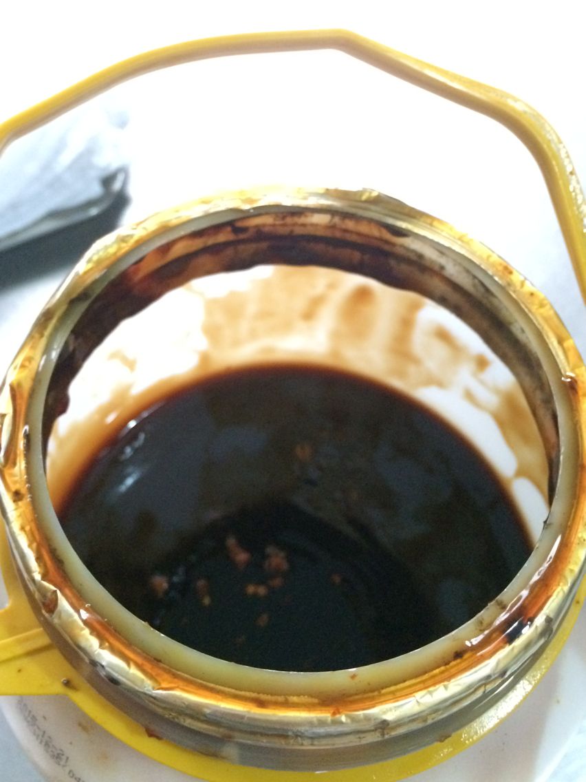 使用过的蚝油有明显的霉菌(记者 戴仲辉 摄)