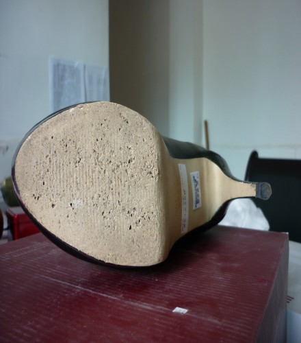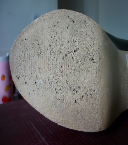 我觉得,鞋底的材质不是平常的牛筋底,而是软软的像泡沫一样的材料,用手就可以抠下一块下来。不仅鞋底有问题,鞋跟的配跟也磨得可以看到铁钉。