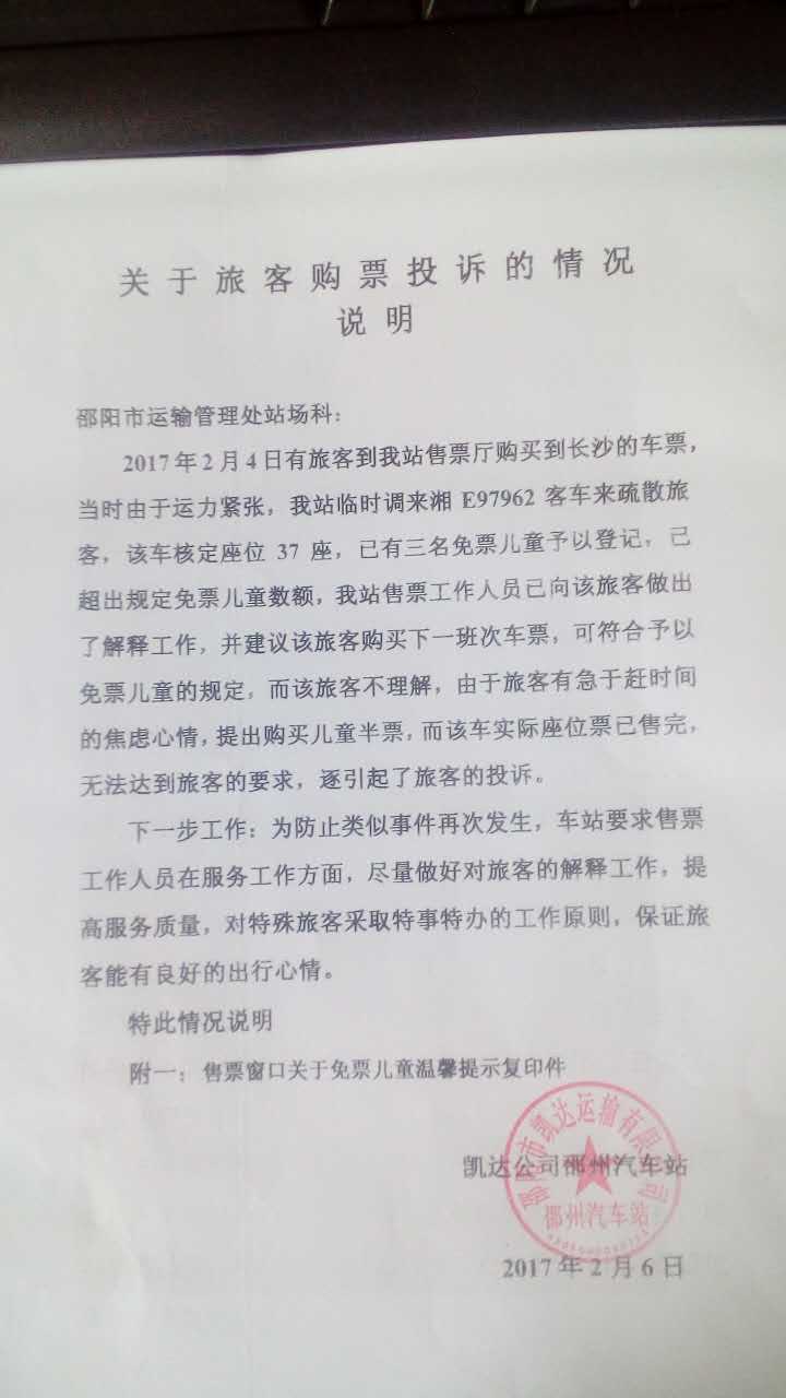 凯达公司郴州汽车站回复: