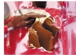记者把一扇花300元买的“防盗门”摆放在广场上,引起很多市民围观。“应该很坚固吧?”很多市民看了后表示。记者先对着门踹了一脚,面板凹陷了进去,再踹两脚,这扇廉价的防盗门外壳已经变形了。接着记者又用锤子在这扇门猫眼下面的位置随便敲了几下,居然把门打开了。用铁钳将门板翻开来看,原来这扇门是用铁皮仿制而成,可以不费力地用钳子撕开。撕开一看,没想到防盗门中间不是钢板,而是一叠厚厚的“蜂窝纸箱”!而且,铁皮的背后已经是锈迹斑斑。旁边观看的市民都不禁感叹,没想到防盗门会是这样。