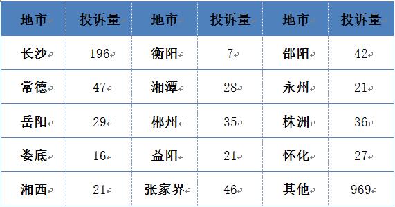 本周,各地市收到有效投诉量如下表: