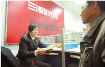 12月21日,省检察院控告检察处信访接待科科长龙小素来到三湘都市报,为讨薪农民工提供法律援助。记者 王翀鹰 摄