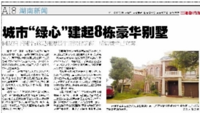 21日上午,湘潭市红旗综合农场,8栋豪华别墅建在一座宝塔旁边,有的别墅还辟有菜园,有的则修有凉亭、假山和观景溪。