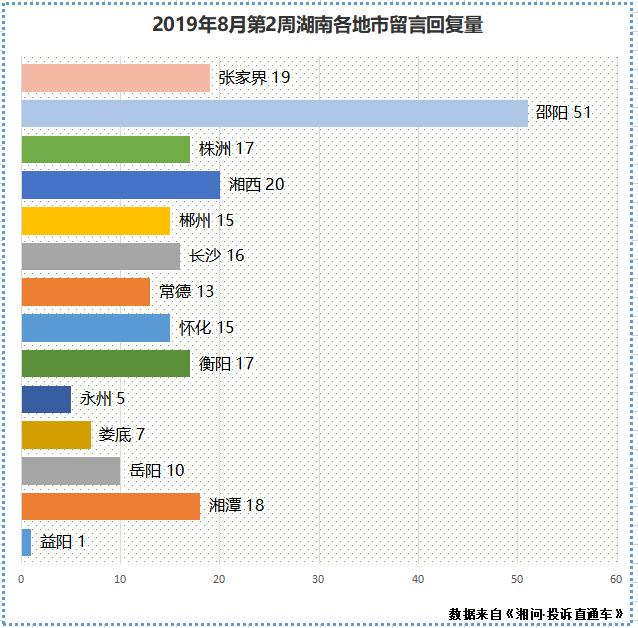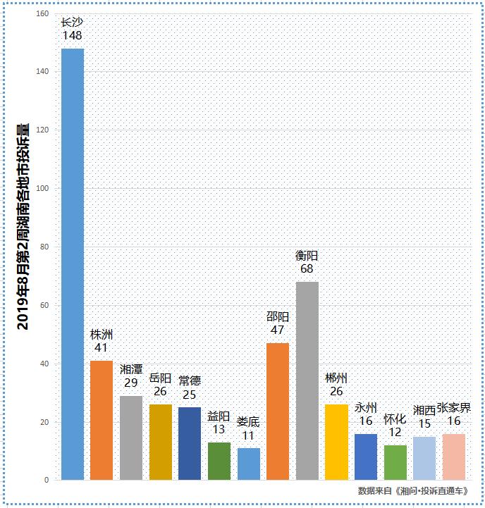 2019年9月第二周,《湘问·投诉直通车》栏目共审发有效投诉1813条,其中省内投诉492条,外省投诉1321条。从地域分布来看,各地市均有涉及,其中,长沙、衡阳、株洲、邵阳、岳阳等地网民留言量较多,比较活跃,益阳、娄底、怀化、永州、张家界等地网民留言量较少。从相关部门回复办理情况来看,长沙、株洲、湘潭、张家界、湘西等地留言办理积极,办结率高,益阳、郴州、岳阳、娄底、永州等地留言办理滞后,办结率低。从网民留言话题领域来看,主要集中在交通运输、教育培训、城市管理、政务作风、财经金融等方面。