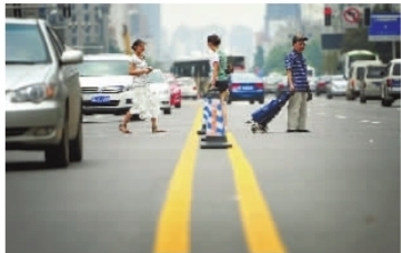 本报6月27日讯 颤巍巍的老人缓缓地迈着步子;姑娘们踩着高跟鞋边走边煲电话粥;年轻妈妈推着婴儿车左右腾挪……这可不是步行街,也不是沿江风光带,而是车辆川流不息的五一大道。