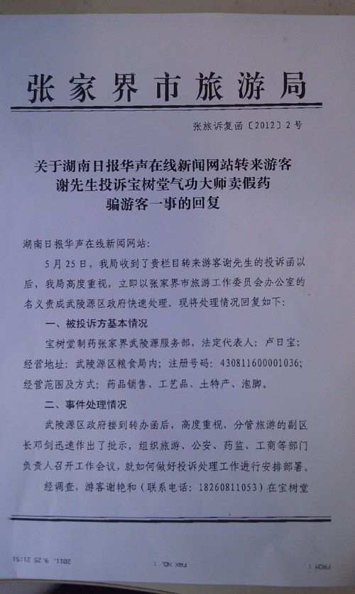 投诉链接:武陵源宝树堂卖假药骗游客