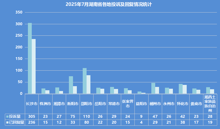2025年7月,《湘问·投诉直通车》栏目共审发投诉2945条。其中,审发湖南省内投诉839条,各单位办理回复588条,回复率70%。