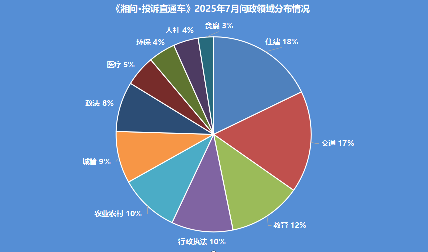 《湘问·投诉直通车》2025年7月问政领域分布情况