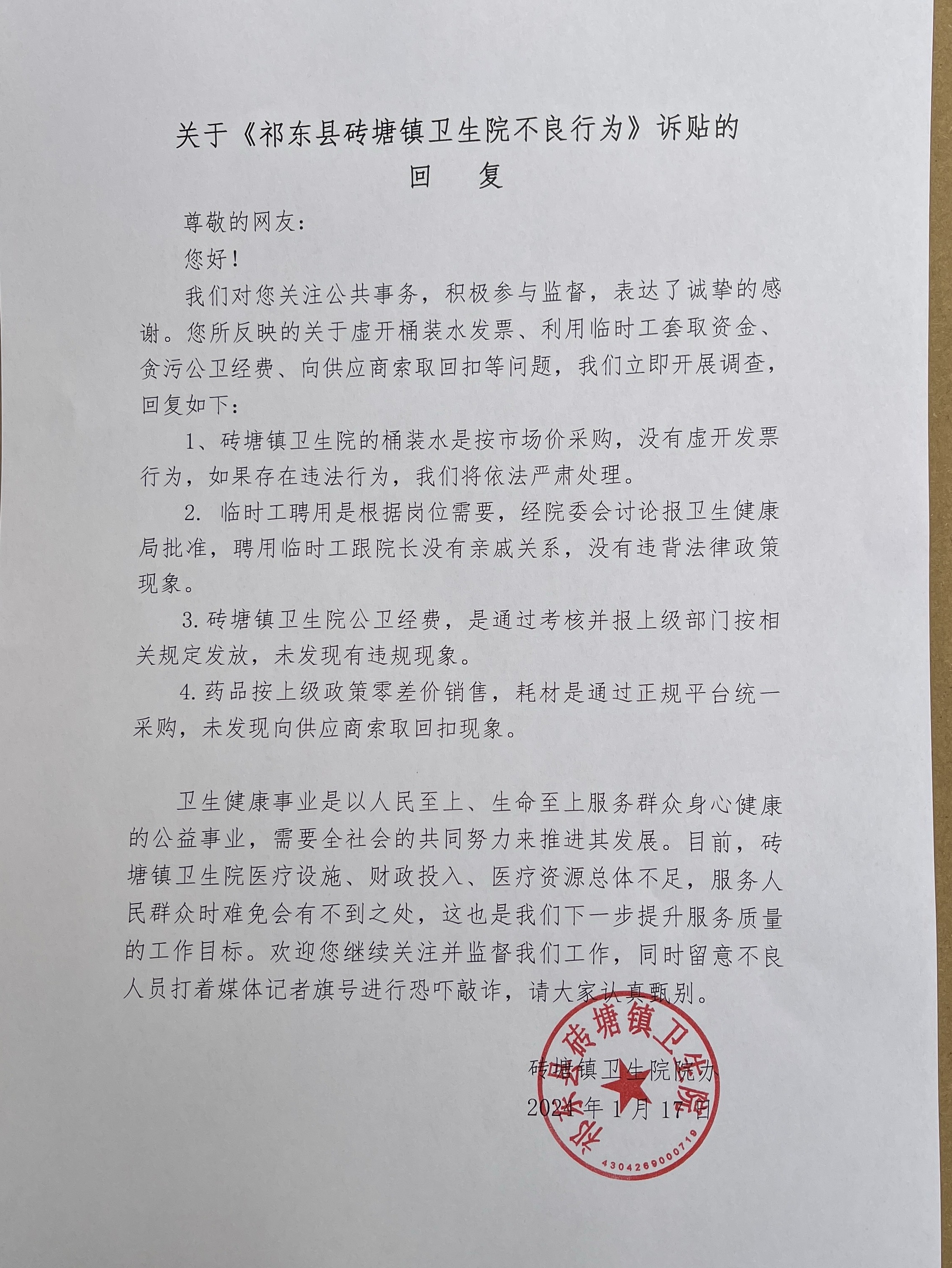 砖塘镇卫生院院长虚开发票报账(连院里每年买桶装水都 要多报几仟元)。院内现有聘用人员都是院长的关系户,利用这些临聘人员套取院里资金和其他几位领导私分。院长利用职权贪污公卫经费,向供应商索取回扣。