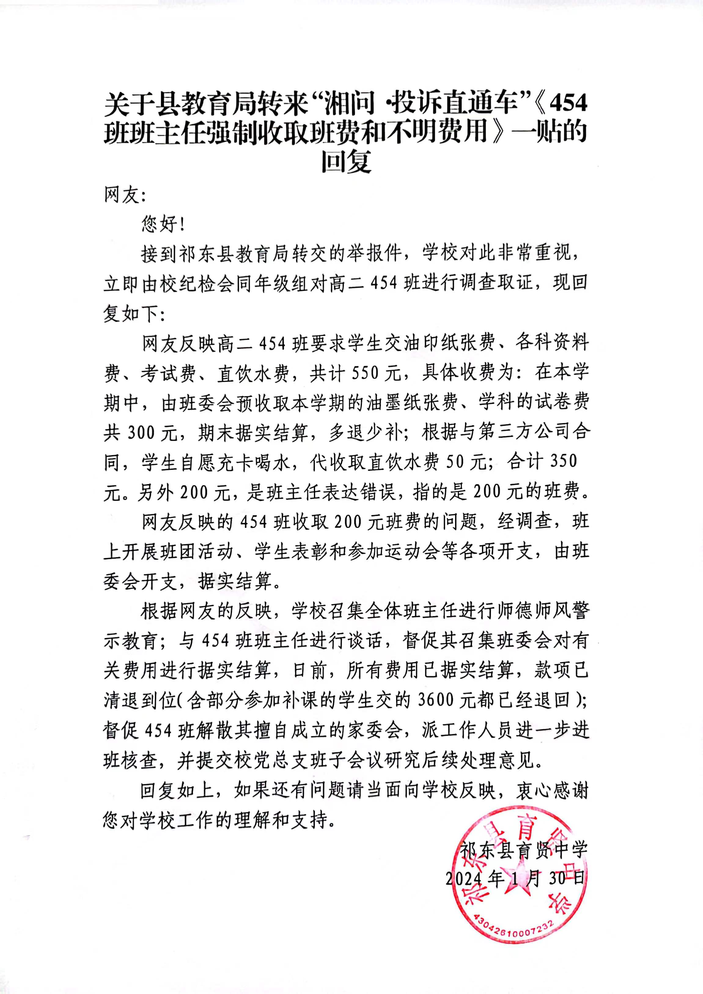 举报湖南省衡阳市祁东县育贤中学454班的班主任(乱收费、班费支出不透明以及不征求家长与学生的同意),以下是具体证明,请领导详细调查!!!