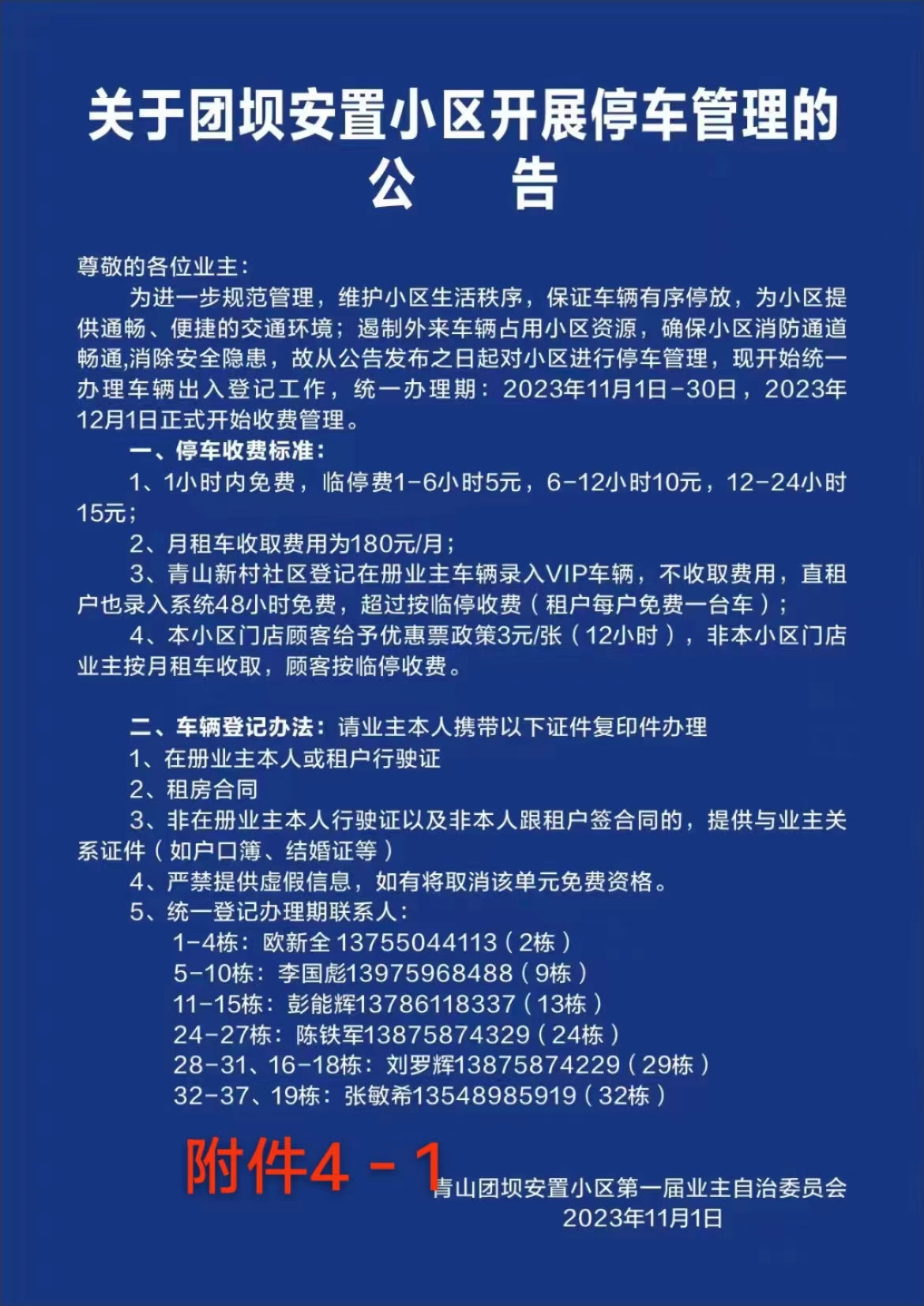 为加强青山新村团坝安置小区安全管理,2023年9月16日,青山新村安置小区组织各栋业主召开协商会议,9月19日推选出小区业主自治管理委员会,并在小区进行了公示。为规范小区内部停车问题,经小区业主大会同意,团坝安置小区业主自治管理委员会在本小区红线内的3个入口安装了停车道闸系统,杜绝因车辆乱停乱放带来的安全隐患。该处停车道闸系统的安装,是经团坝农民安置小区全体业主同意,在本小区红线范围内安装的停车系统,没有占用其他小区区域。