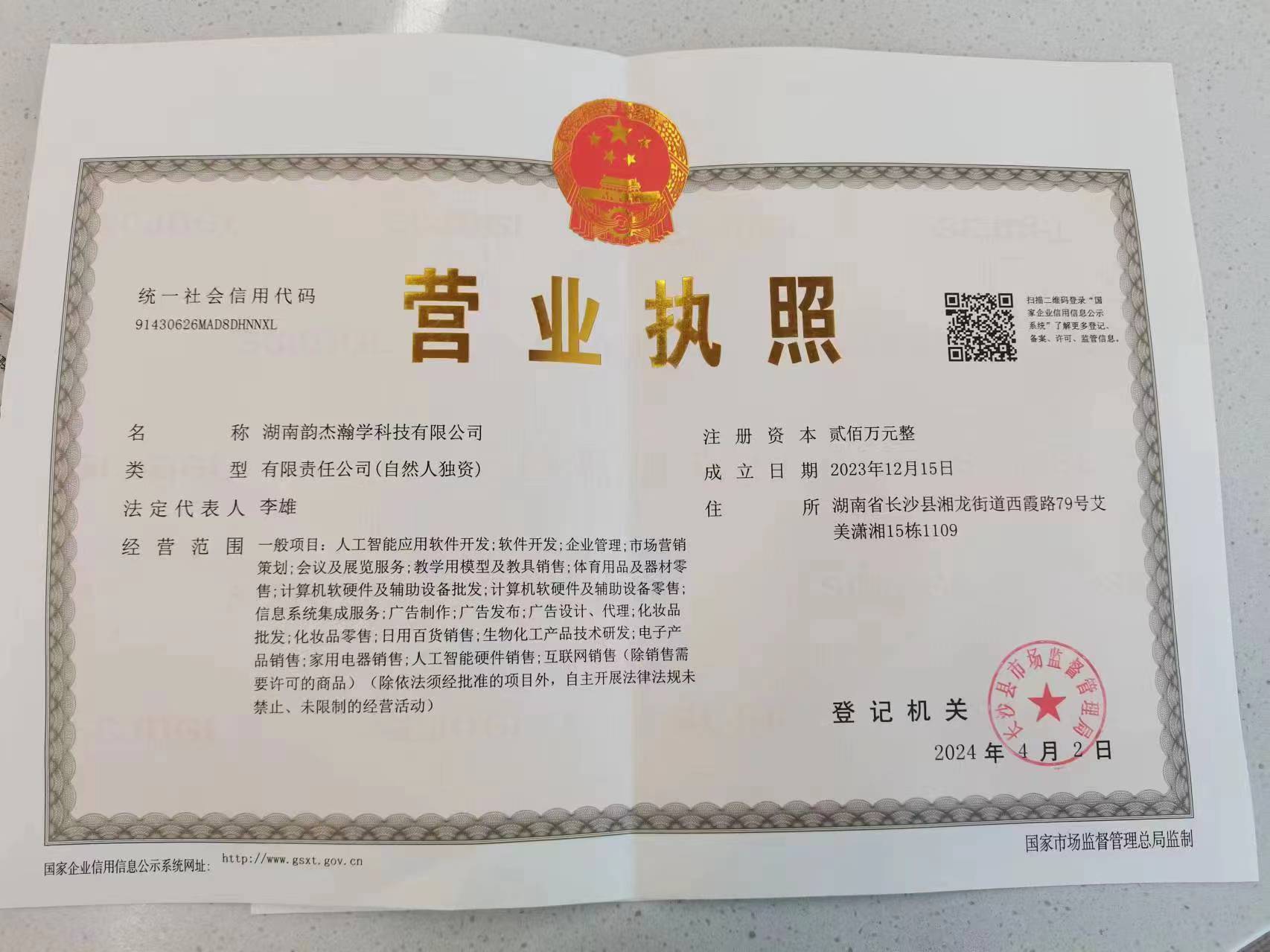 您好!经核实,湖南韵杰瀚学科技有限公司注册地址:湖南省长沙县湘龙街道西霞路79号艾美潇湘15栋1109,按照属地管理原则,请您到属地市场监管部门处理,感谢您的关注。