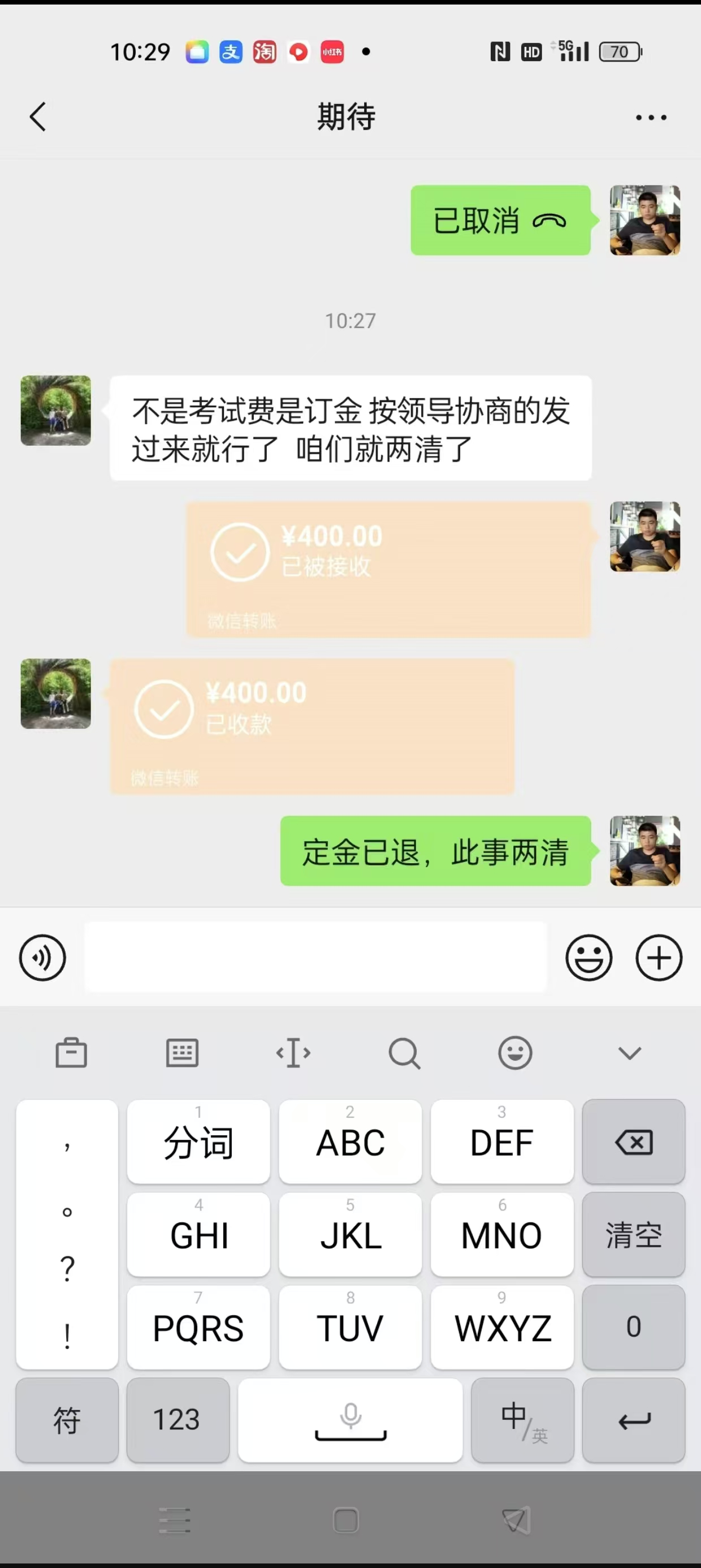 经驾培服务部与鲸港驾校、学员进行调解,10月31日安乡鲸港驾校已退还学员400元定金。