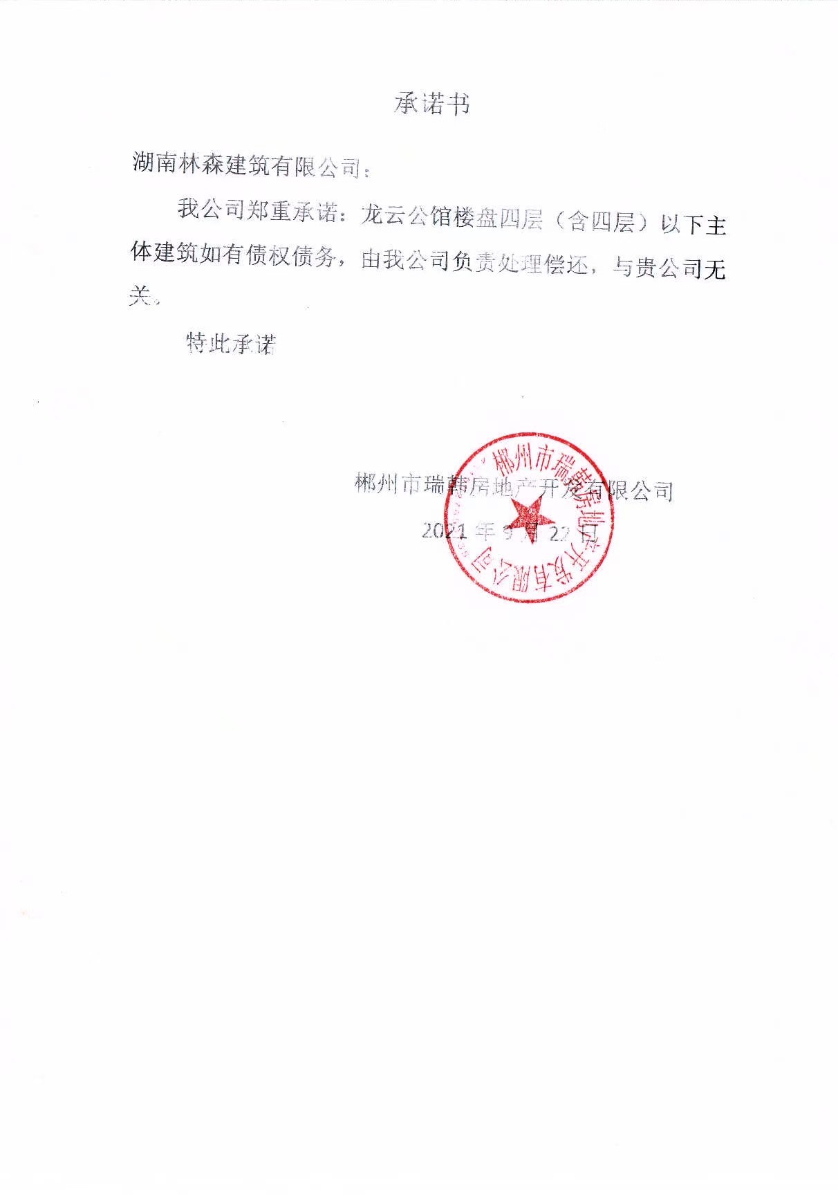 经查,龙云公馆项目的建设单位为郴州市瑞韩房地产开发有限公司,施工总承包单位为湖南林森建筑有限公司。现对方对您反映的欠薪问题未予确认。
