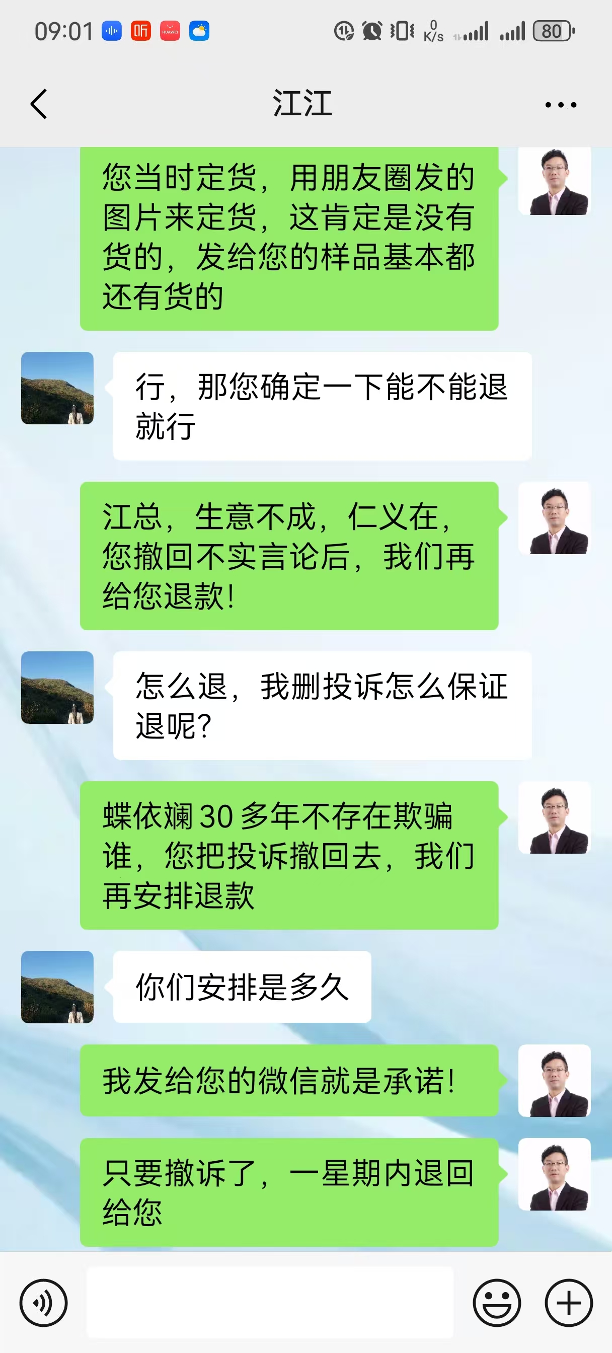 感谢经销商江总的理解,感谢湘问直通车平台的关注,江总与蝶依斓窗帘公司达成了和解!在此,蝶依斓公司郑重重申:蝶依斓31年的老品牌,被湖南公司所在地株洲市评为“株洲市老字号”,诚信经营是我们一贯的服务宗旨,本贴”一次货都不让经销商拿货,做虚假宣传,玩文字游戏“的表述纯属误会,作为源头工厂的我们肯定是希望经销商多多拿货,因为只有双赢才是最优解的合作模式,好在目前我们与江总已经解除误会,此投诉已经解决,希望平台尽快撤销《被蝶依斓窗帘公司收了2680》这篇贴子。向你们致谢!