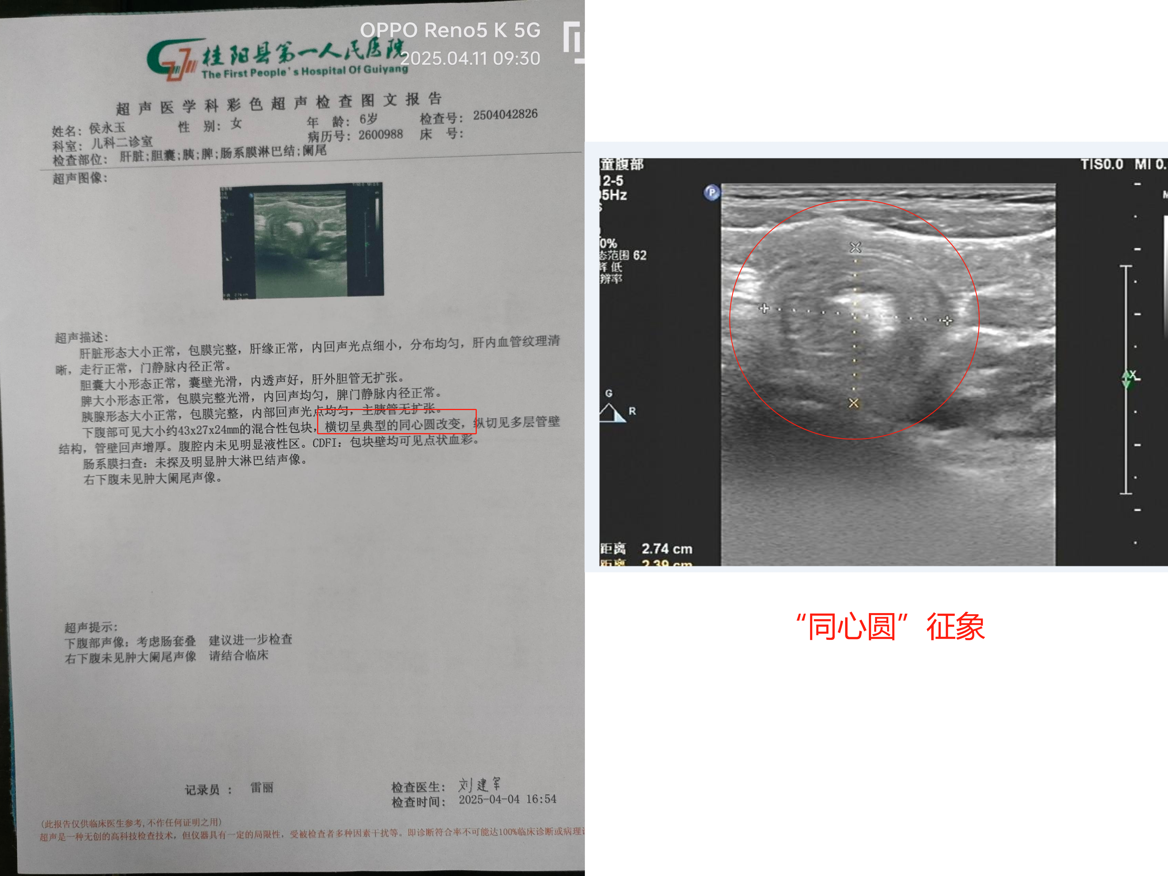 2025年4月4日,由于我小孩子肚子疼,前往桂阳县人民医院就医,就诊医生经过初步检测后开了X光,B超及验血单,经过各项检查,最后确认为肠套叠(详情请看我上传的照片),就诊医生说需要马上住院动手术治疗。由于我不怎么相信带小孩去了另一家医院就诊,人家照了个B超,确认为肠炎,只需开了几十元的药,人民医院,你们这种行为不是在谋财害命吗?为了不让更多的人受害,我特向各级领导反映此事,希望各级领导重视起来,并给我一个合理的答复。