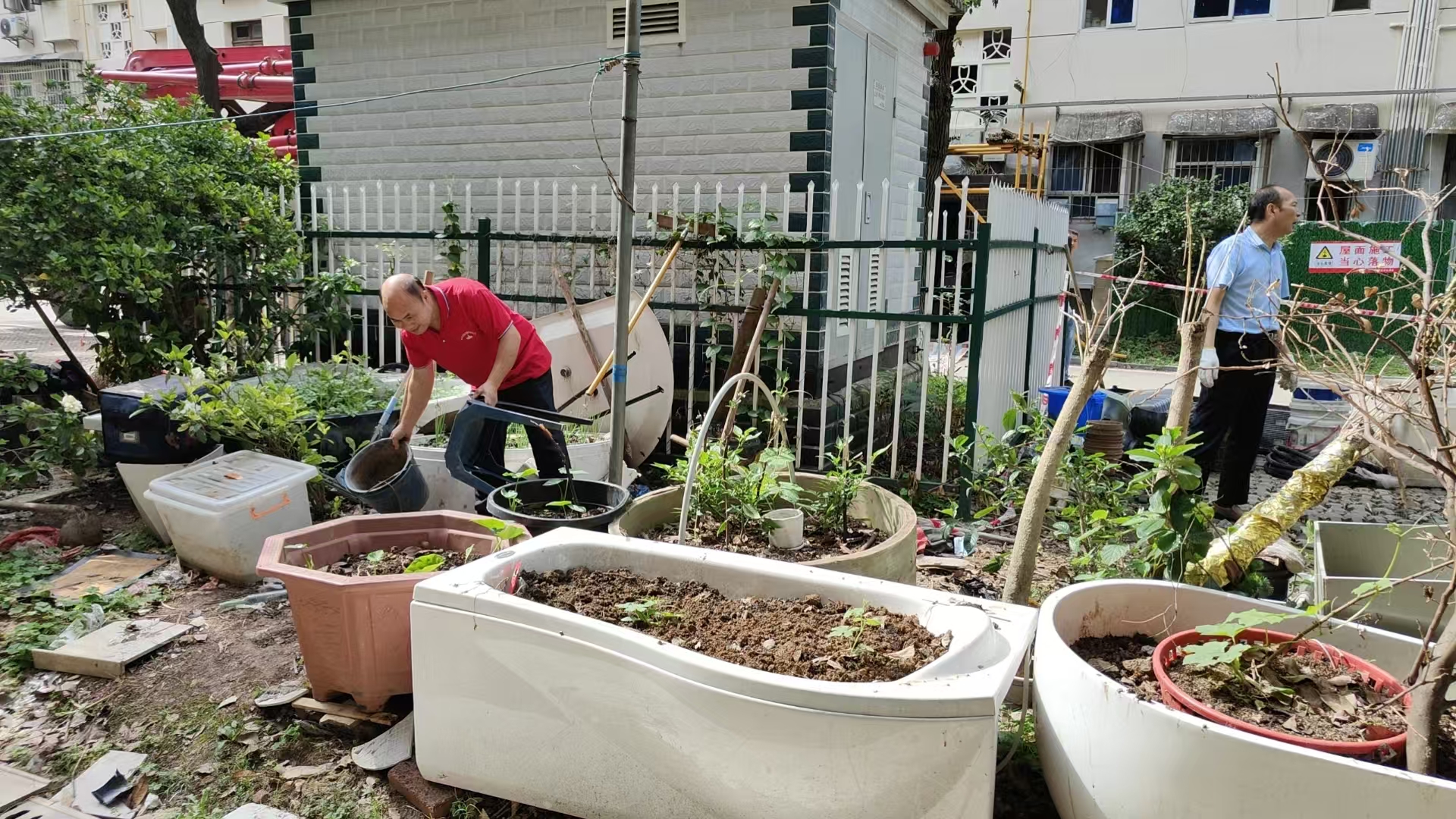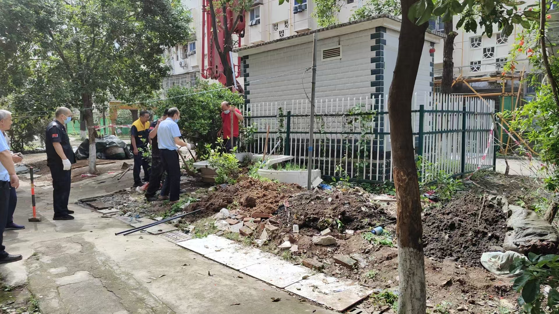 网友您好!您所反馈的问题,街道生态事务中心联合派出所、社区工作人员对当事人进行了劝解。组织了联合行动,菜地已经全部清除完毕。小区正在进行提质改造,现场的垃圾将在下步组织清运。
