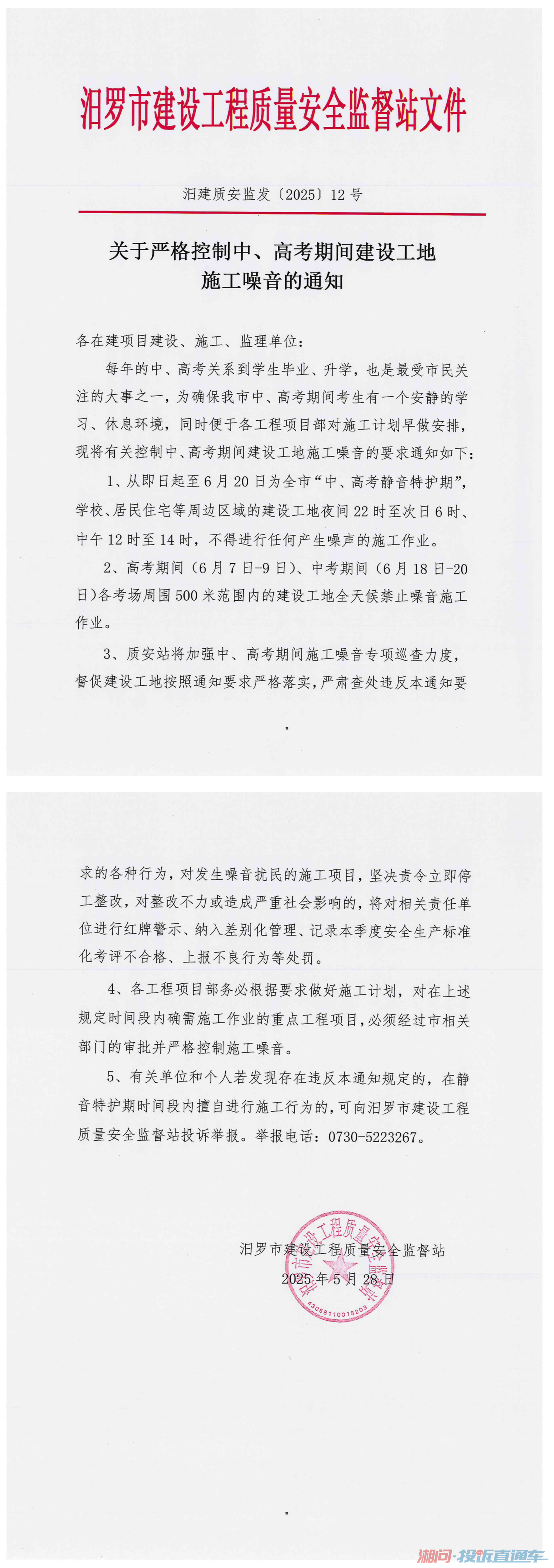 网友,您好!接到您反映的情况后,我单位工作人员立即赴现场核查。经核查,该工地非市政公司项目,为该路段零星维修工程,预计在6月上旬完工。我单位工作人员就其噪音扰民情况现场约谈施工单位负责人,负责人表示:“现该项目可能会产生噪音的施工工序已全部完工,施工机械已有序撤场,后续将严格约束施工班组在合理施工时间段作业,避免产生噪音扰民。”另:因中、高考临近,为保证广大学子的生活与学习。我单位就施工噪音事项于2025年5月28日下发《关于严格控制中、高考期间建设工地施工噪音的通知》,如建设项目有违反通知内各项内容的,可拨打通知内附联系方式进行举报。感谢您对住建工作的监督与支持!