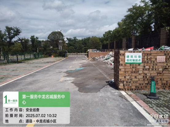 因中龙名城项目是新交付小区,现在是装修高峰期,每天装修建筑垃圾产生量较大,该小区规划设计并未设置装修建筑垃圾堆放点,且该小区装修垃圾都是堆放在自己小区内,并建有临时隔墙。通过我单位上次要求加强清理小区装修建筑垃圾的工作要求后,物业公司也对装修建筑垃圾堆放点进行加强管理和积极清理工作(附近期清理照片)。