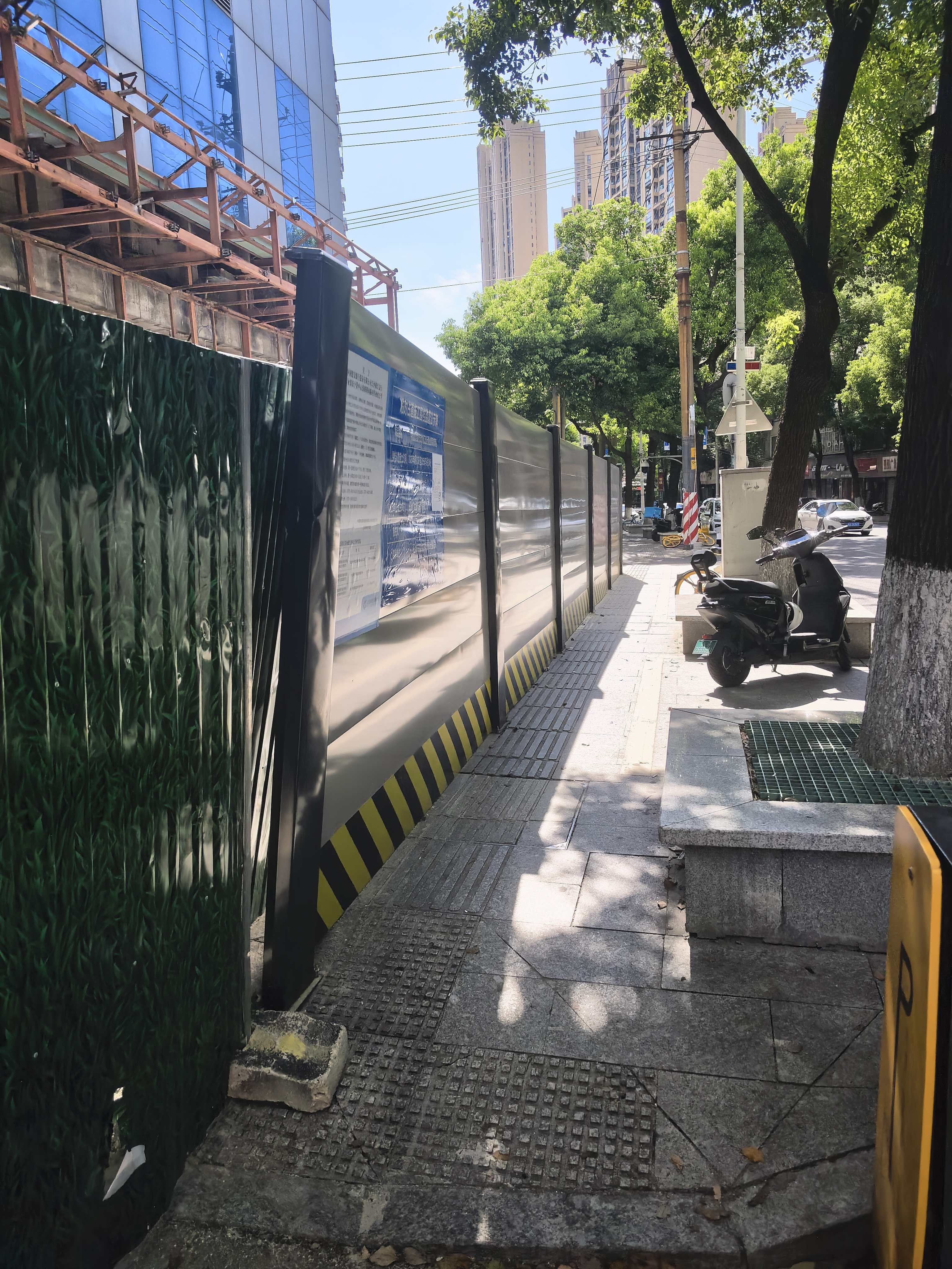 经核查,该处装修已办理《长沙市开福区临时占用、挖掘城市道路许可证》(开城管许〔2025〕占挖099号),其占道施工行为本身符合相关规定。该处装修围挡占道范围长度为36米,宽度为1.5米,总面积为54平方米,来往行人可在人行道上通行。目前,该处装修围挡上已按规定公布《临时占道施工围档监管公示牌》,包含围挡起止时间、面积、施工单位、联系人及电话、监管单位和投诉举报电话等信息。