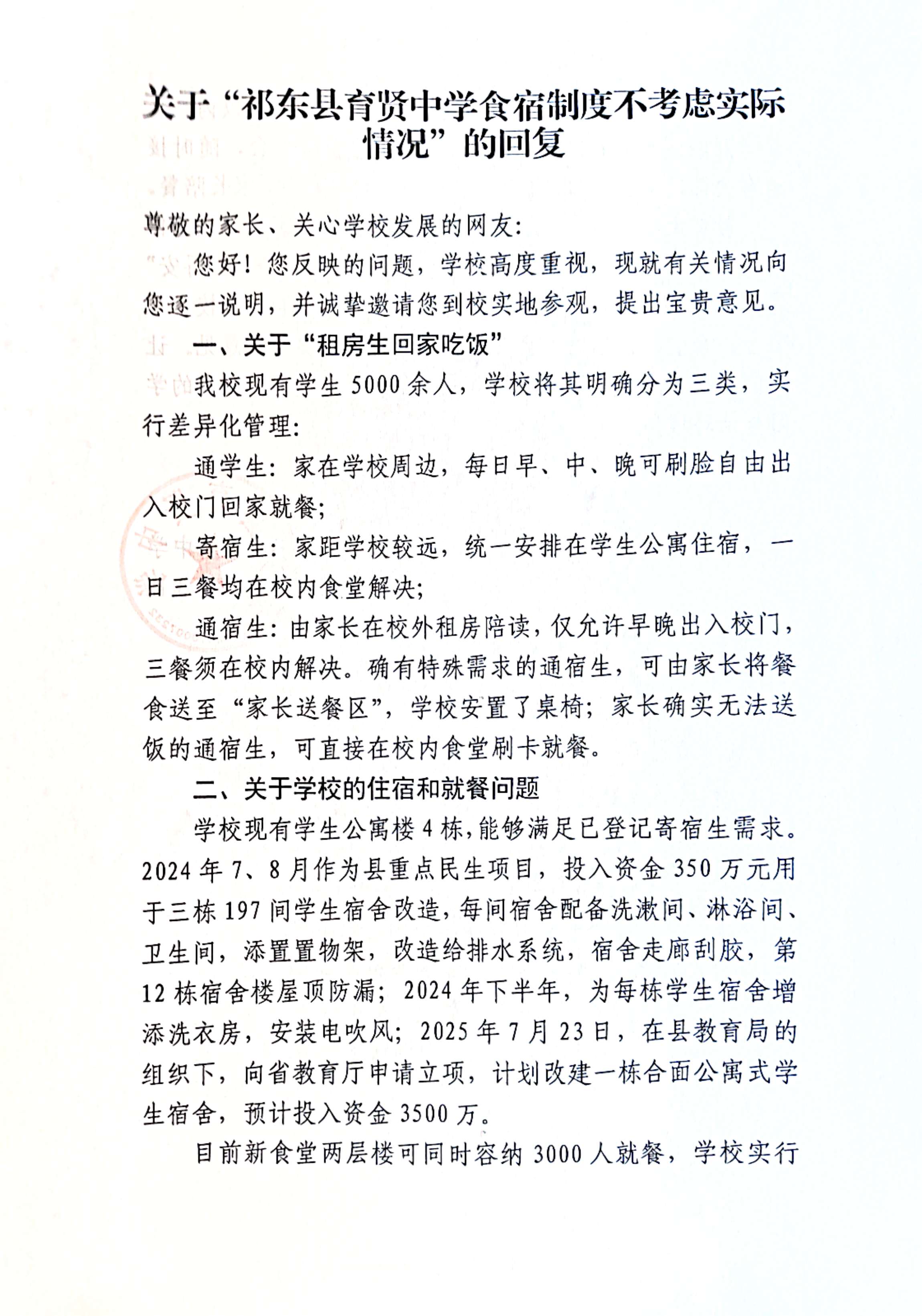 祁东县育贤中学是一所公办学校,是一所完全中学,全校有5500多学生。由于学校宿舍紧张,学校食堂容量不大,故学校不强制初中生在校餐宿,建议家长陪读;却强制高中生在校就餐住宿。在我的印象中,国家法律应该没有限制学生在校就餐、住宿的自由。该学校的高中生有三种情况:寄宿生(在校就餐住宿) ,通宿生(在校吃不在校住),走读生(也叫通学生,在家吃住)。