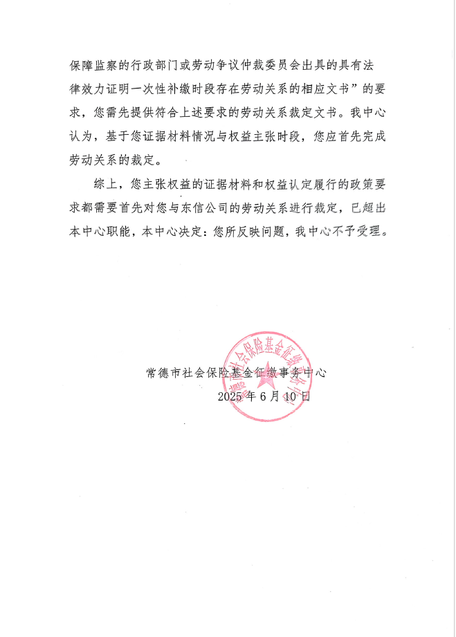网友,您好,您反映的问题已收悉,现回复如下:您反映的问题,市人社局征缴中心已对您出具了书面回复,此次反映问题并无新增诉求与证据,征缴中心不再补充说明。(书面回复详见上传图片)