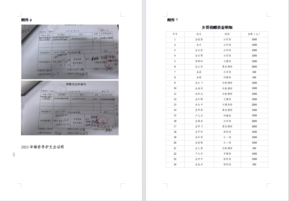 乡贤捐赠资金明细