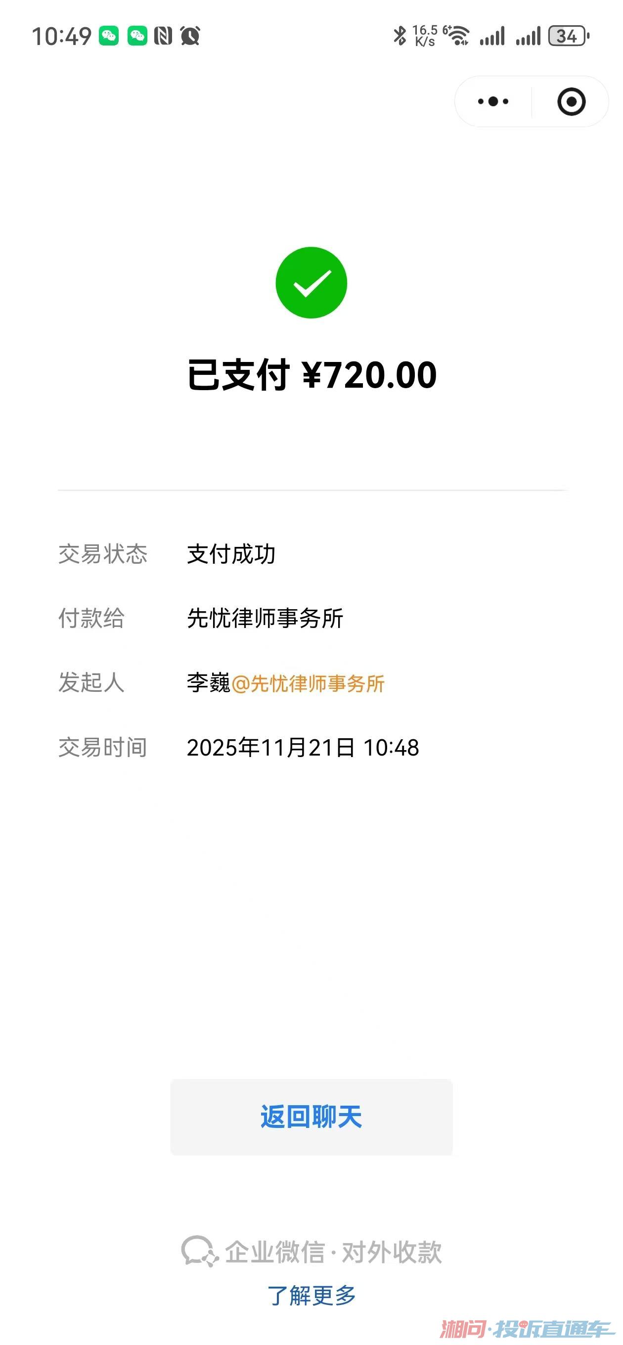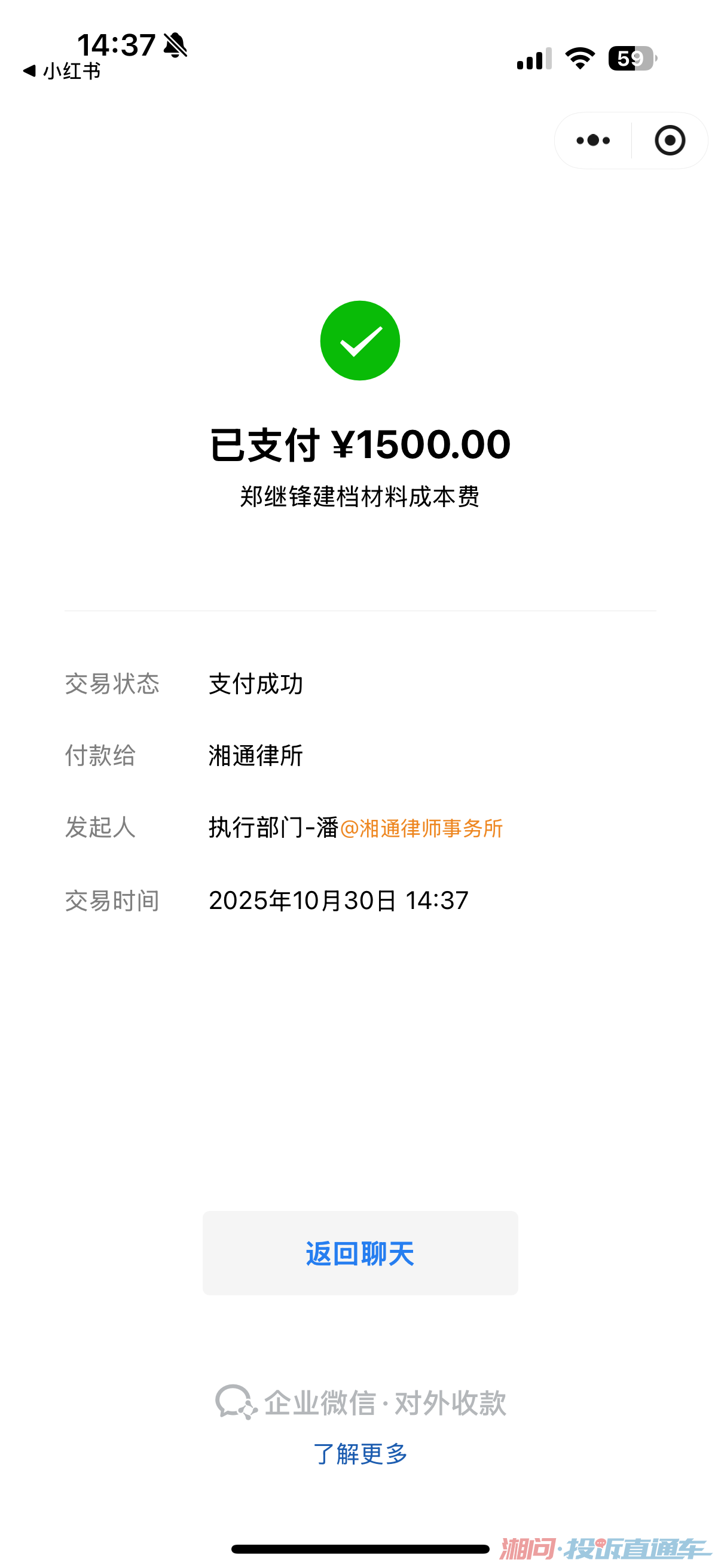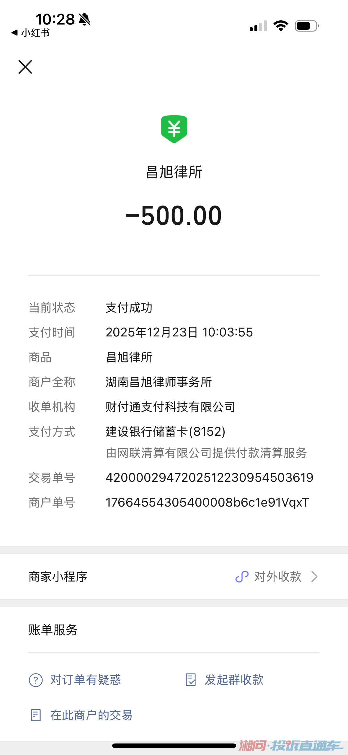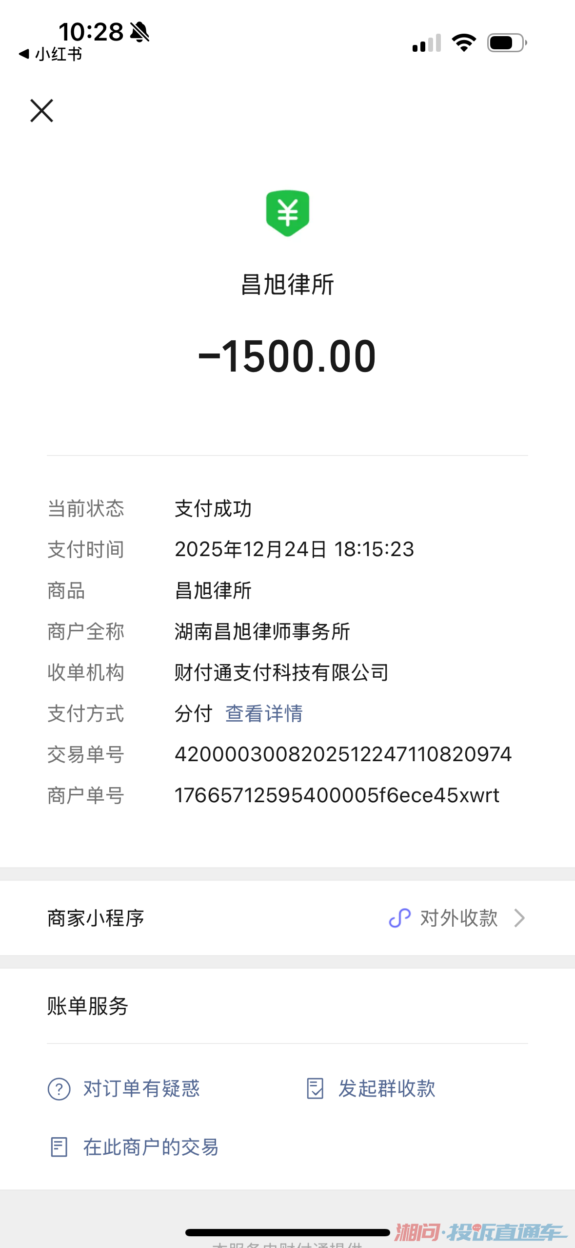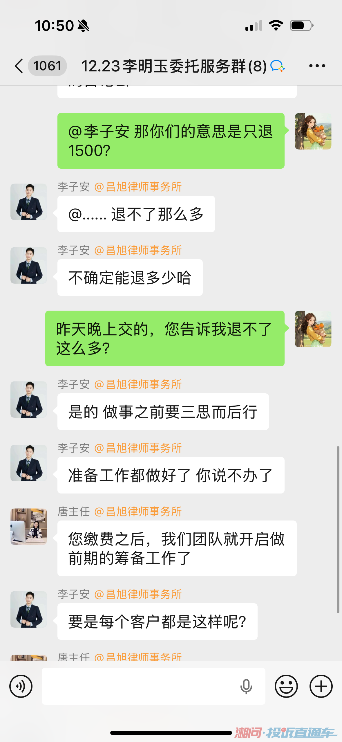 投诉湖南昌旭律师事务所拒绝退还未履行服务的1500元