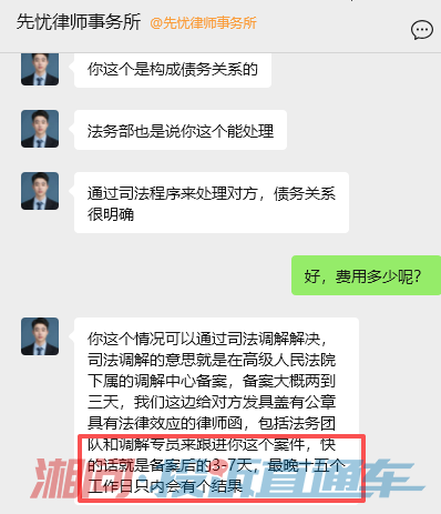 12月23日,本人在闲鱼咨询律师维权,湖南昌旭律师事务所添加我的微信,告知我调解非诉方式是分阶段收费,前期收取 500元的律师函材料工本费用 及委托费用,作为渠道搭建(先行缴纳),成功回款之后会收取成功回款金额的10%作为服务费,对方还款是还到我的账户,我收到款项之后再付后期服务费用!我提交了500元,签订合同,12月24日何老师告知我唐主任受理,唐主任微信语音告知我有两种途径,写完毕加盖公章,司法局审核备案。律师函出具生效后,法务会以律所的名义主动去联系欠款人进行沟通调解,核查欠款人真实情况,告知欠款人不还款要面临的法律后果,并将律...