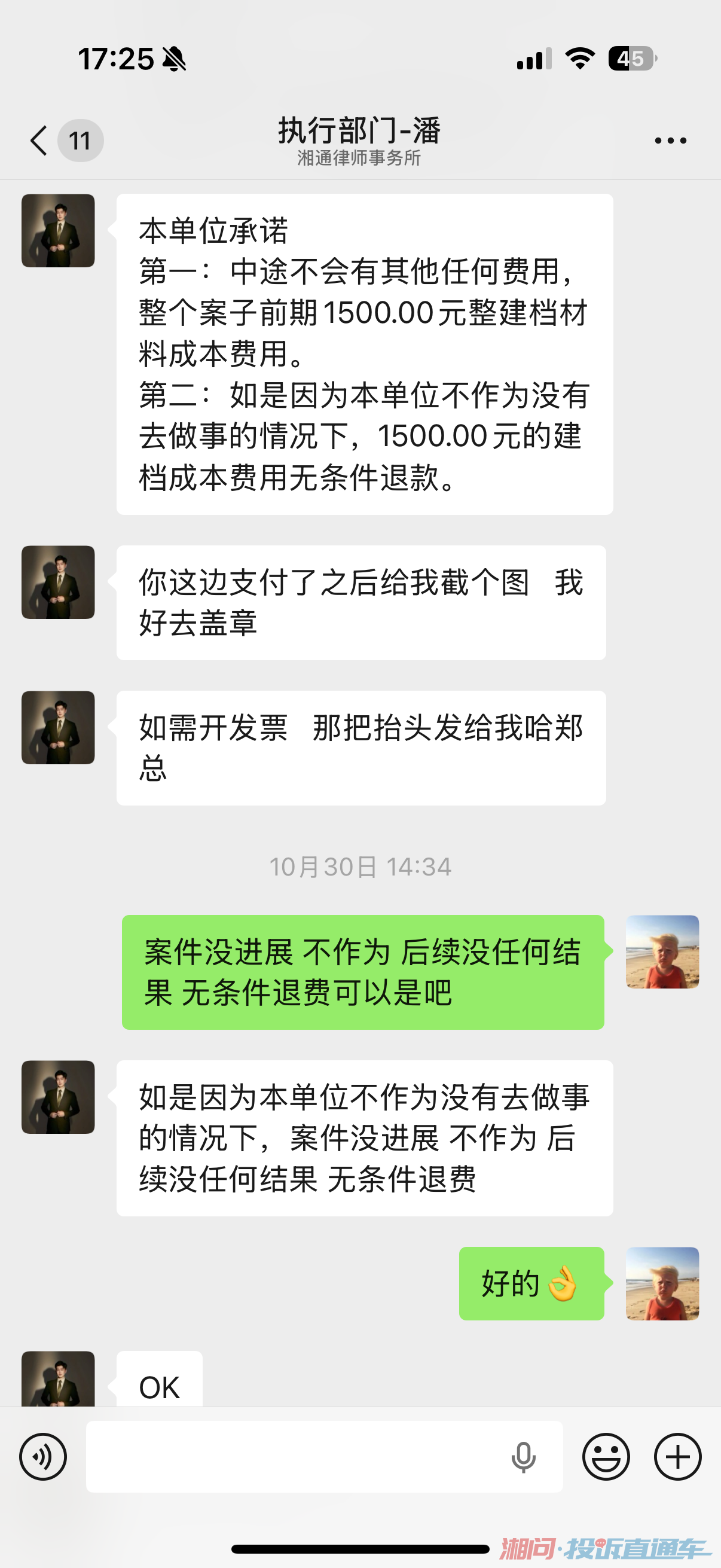 投诉关于湖南湘通律师事务所虚假承诺要求退费