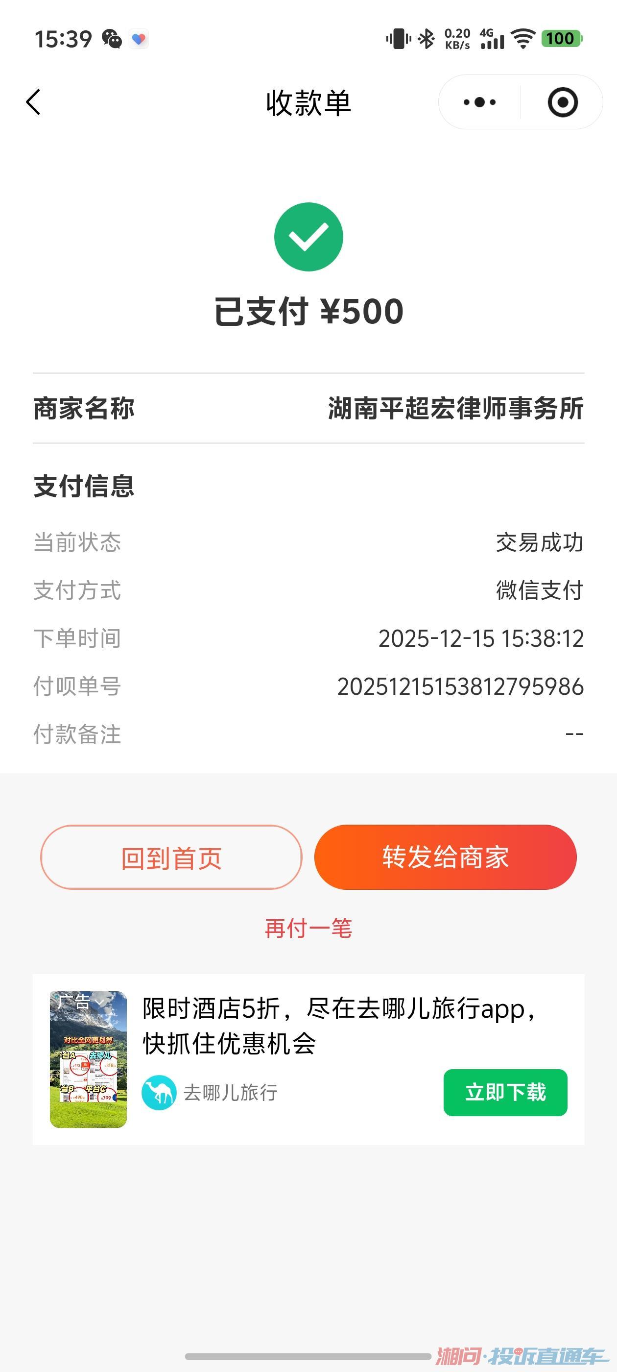 投诉投诉长沙仕兴法律咨询,收尾款无证明还爆我通讯录,速退钱!